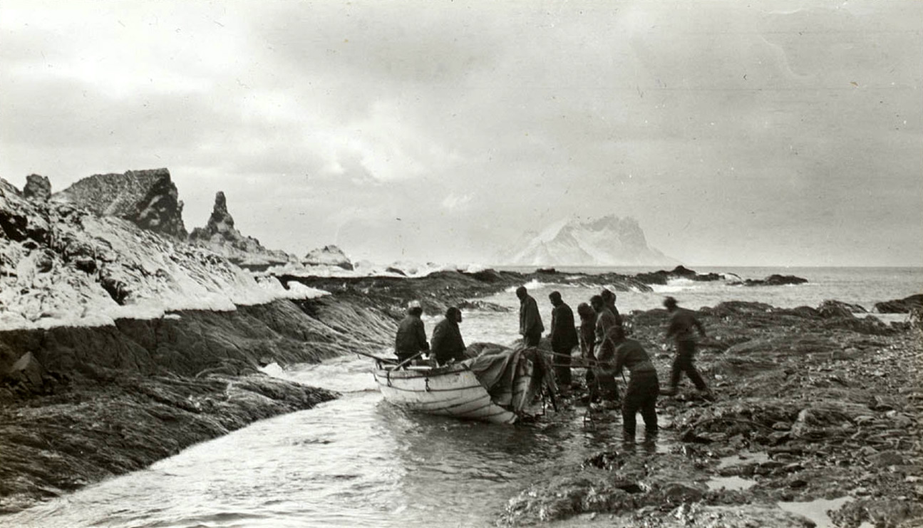 En abril de 1916 la masa de hielo comenzaba a fragmentarse. Decidieron echarse al agua y derivar sobre las tres embarcaciones (James Caird, Stancomb Wills y Dudley Docker). Alcanzan la Isla Elefante en la punta norte de la península antártica. Hacía 16 meses que no pisaban tierra firme. Habían recorrido por lo menos unos 3.500 kilómetros.