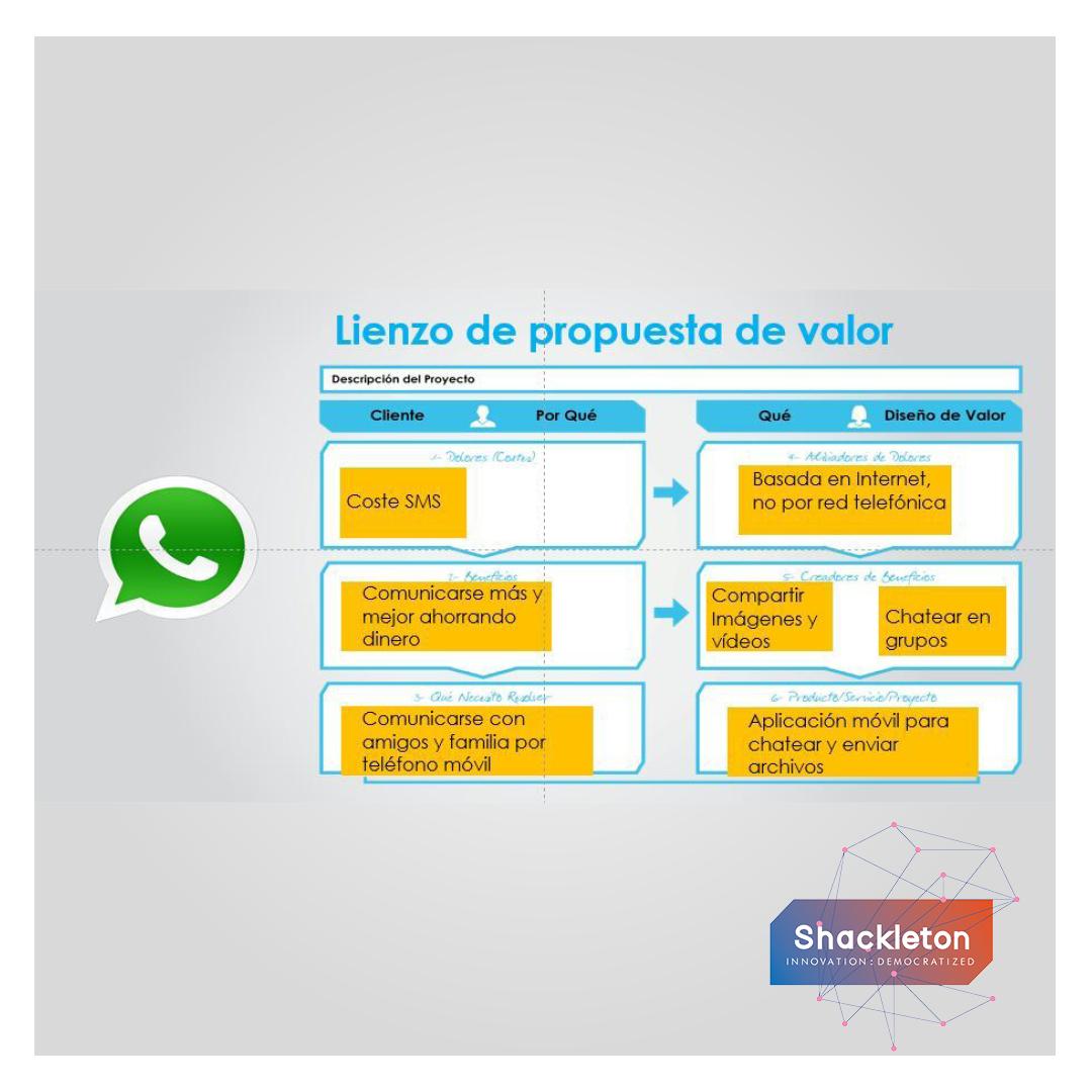 Respecto al diseño de valor de la compañía de mensajería móvil Whatsapp que ayer planteamos, nosotros pensamos que esta empresa propone unos aliviadores de dolores basados en un funcionamiento vía Internet en lugar de red telefónica. Además, en lo que a los creadores de beneficios se refiere, el usuario tiene la posibilidad de compartir imágenes, vídeos, etc. y chatear en grupos con gente de su entorno cercano.